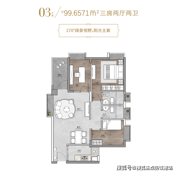 建面103㎡三房两厅两卫:品质生活的宽境大宅