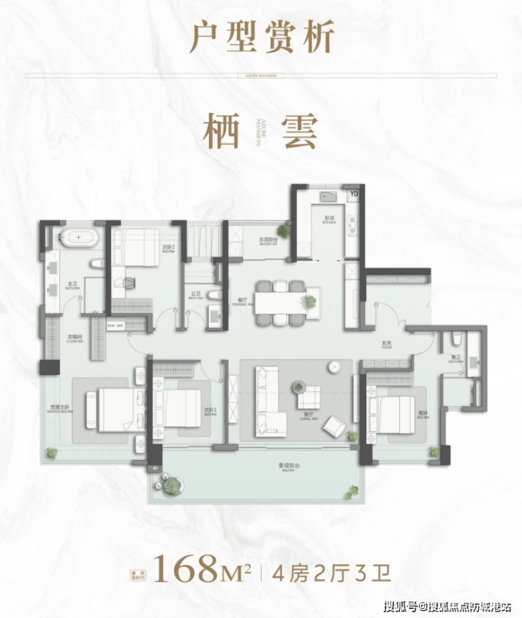 168㎡四房三卫:双套房配置,高端改善终极之选