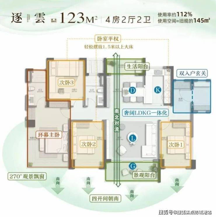 如果说地段是项目的“骨架”,那么产品力就是它的“灵魂”。招商青雲臺深谙改善家庭对空间的真实需求,基于626户家庭调研与127份户型手稿反复打磨,推出建面约123–168㎡的四房产品,使用率高达106%–112%,远超市场平均水平。这一惊人数据,得益于对“超新规”政策(阳台计容比例放宽至30%)的极致运用,也体现了对居住痛点的深度洞察。