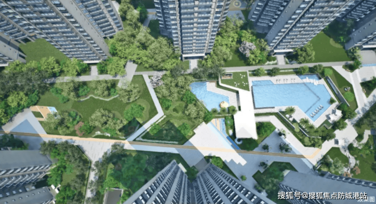 信保城项目采用围合式的楼栋布局设计,将 23 栋高层住宅沿社区外围有序排布,在社区中央形成了大面积的集中式园林景观,既保障了每一栋楼的楼间距,让每户都能拥有良好的采光通风效果与景观视野,又为业主打造了开阔的社区公共活动空间,提升了居住的舒适度与私密性。