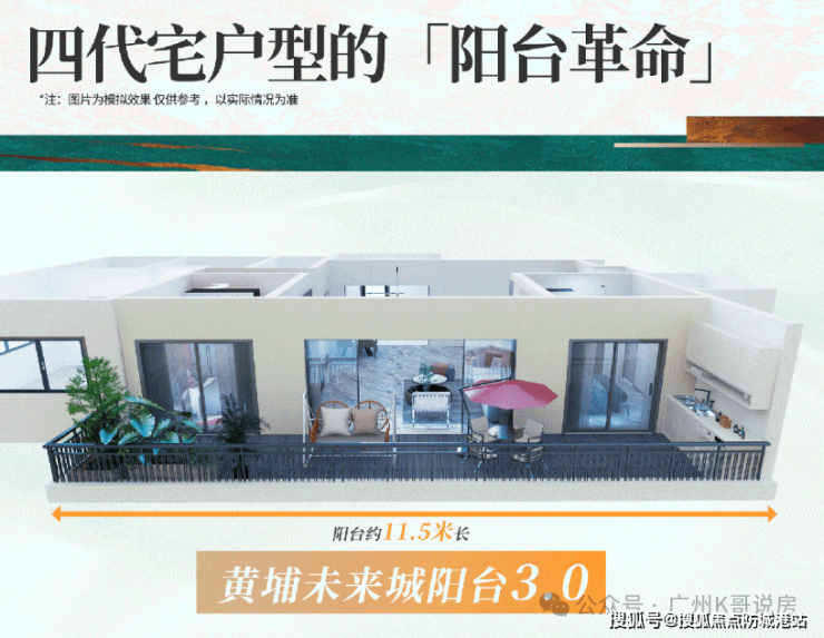 南向景观阳台拥有超大的面宽与进深,与客厅无缝衔接,拓展了客厅的空间尺度,推窗即可欣赏社区中央园林的全景景观,视野极佳。阳台可完全打造为休闲观景空间,摆放休闲沙发、茶桌,打造家庭休闲区,或是摆放健身器材,打造家庭健身区,也可打造绿植花房,让自然绿意融入居家生活,超大的空间可完全满足业主的个性化打造需求,实现休闲、观景、娱乐等多元功能。北向生活阳台紧邻餐厅与厨房,可完全承担家政功能,用于摆放洗衣机、烘干机、清洁工具,存放生活杂物,同时可打造为储物空间,实现家政功能与休闲功能的完全分离,让南向阳台能够纯粹地用于休闲观景,极大地提升了居住品质。