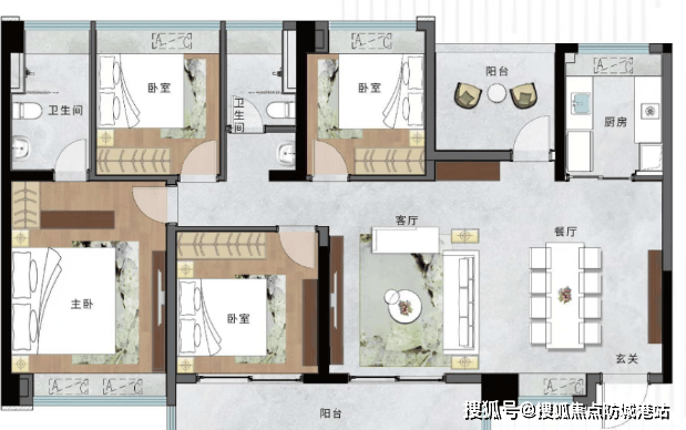 135㎡五房两厅两卫:豪华景观阳台,全明设计,主卧套房设计,独立衣帽间,礼遇尊贵主人。
