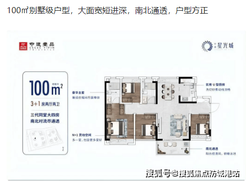 100㎡四房:别墅级户型,大面宽短进深,南北通透,提供极致舒适的生活体验。
