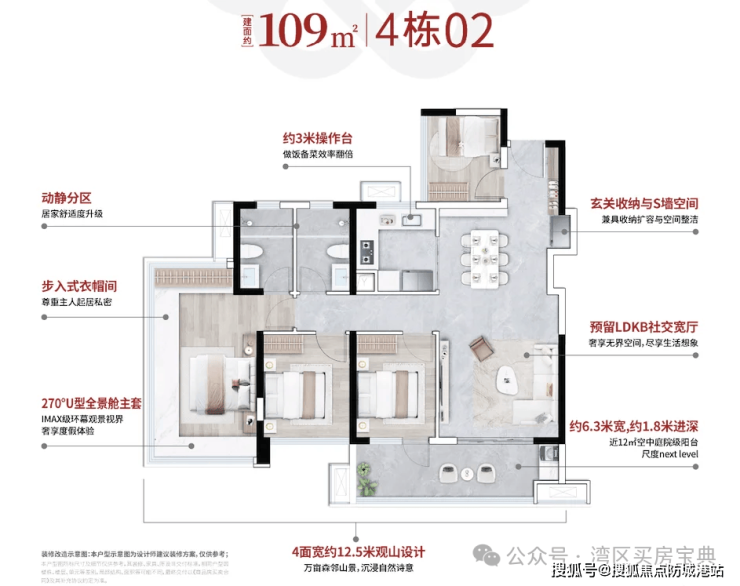 建面约108-109㎡四房:总价约 305万 - 340万