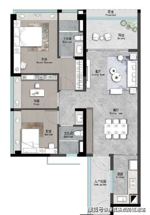 项目约45万m²大体量,涵盖住宅、主题园林、下沉式水景、幼儿园及九年一贯制学校、精品市场等