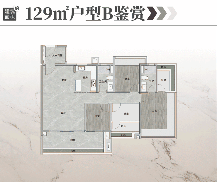 建面129平方米四房:位处高区,户型设计合理,功能齐全。
