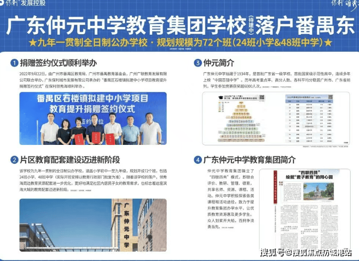 教育配套是保利领秀海的一大亮点。项目已划入仲元学校学区范围,仲元学校规划开设72班,包括24班小学、48班中学,预计2025年9月开学。虽然仲元学校是由旁边的凯德山海连城出资建设,但公立学校是面向整个片区招生的,不存在楼盘之间先后顺序安排入读的问题,人户一致优先。此外,周边2km范围内还有广钢利联花园幼儿园、华师大华兰幼儿园、山海连城小学、广大附中学校等,形成了较为完备的教育体系,能够满足孩子从幼儿园到中学的一站式教育需求。