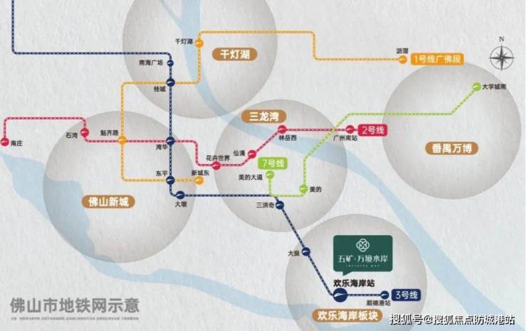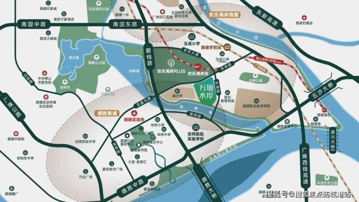 五矿万境水岸紧邻佛山地铁三号线欢乐海岸站,仅约600米步行可达,同时周边规划广珠城轨、肇顺南城际轨道,实现广佛及珠三角区域高效通勤。社区周边高速路网完善,包括广珠西线高速、东新高速、广州绕城高速及佛山一环,快速融入广州都市圈。多轨道交通与高速道路结合,使项目具备高度通达性,无论通勤广州核心区、千灯湖、顺德新城或湾区其他板块都非常便利。交通便利性不仅提升居住体验,也为未来资产保值和流通提供保障。