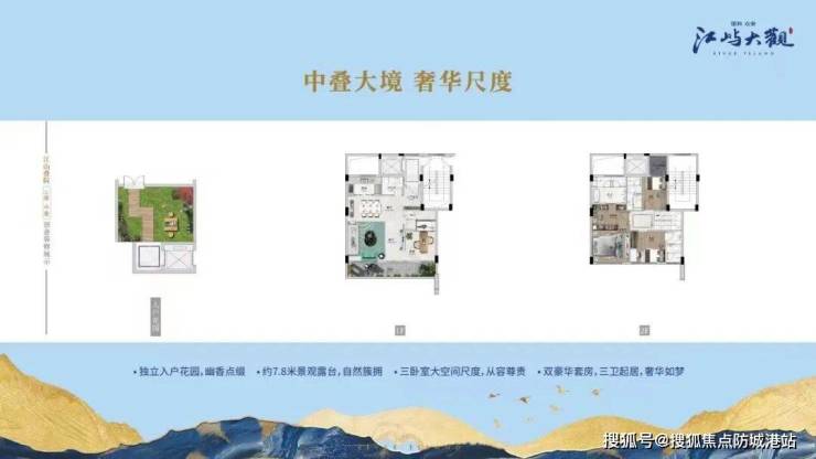 项目叠院产品面积段为160-190㎡,分上中下叠三种。