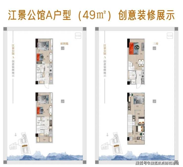 公寓产品面积段为38-50㎡,层高4.5米,带阳台。