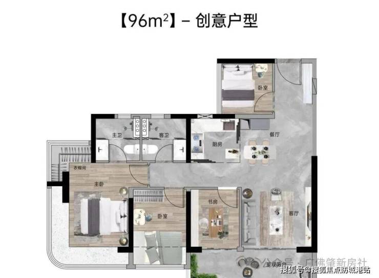 约80㎡三房两厅两卫:总价约460万元起