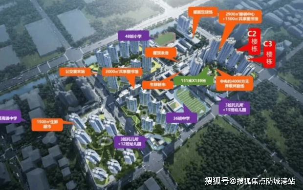 自建15班幼儿园、48班小学、36班中学,满足社区内适龄儿童就近入学需求;