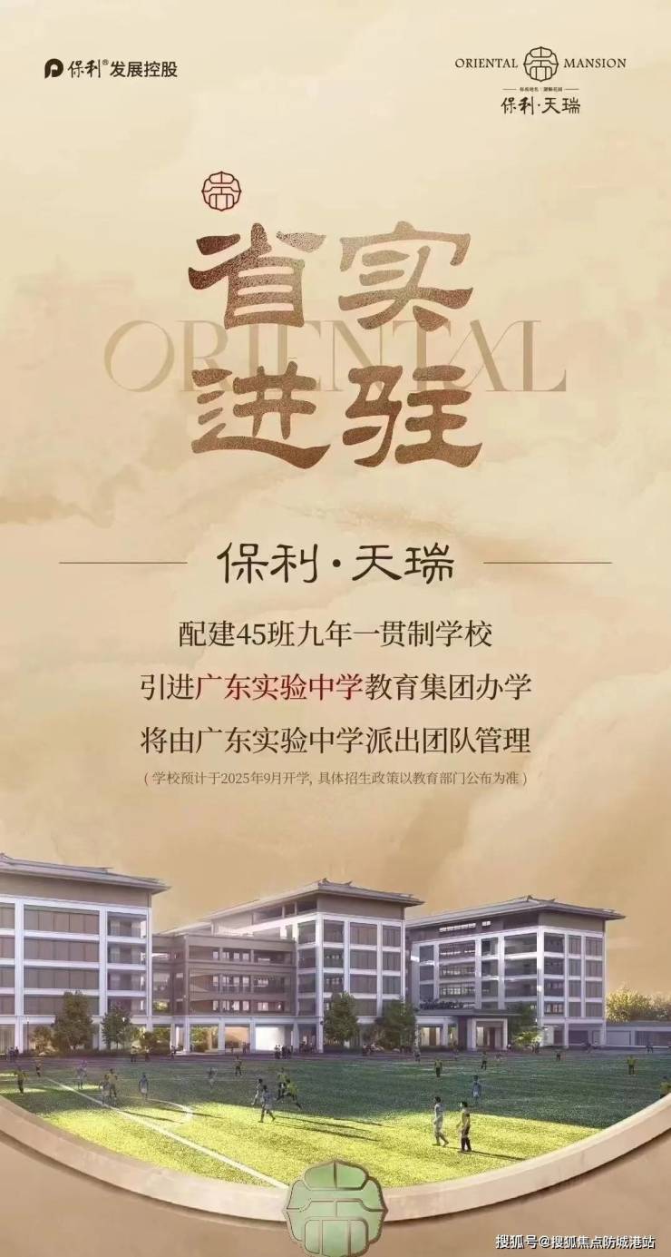 保利天瑞自建45班九年一贯制中小学及18班幼儿园,并已官宣引入广东实验中学教育集团办学,由广东实验中学团队管理。这是天河首次在楼盘配套中引入省属名校,对项目价值的提升具有重要意义。
