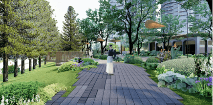 项目背靠河涌,打造了滨河公园,与周边的海珠儿童公园、海珠湖、海珠国家湿地等形成巨大的天然生态背景板。社区内部同样绿意盎然,园林打造六大社区花园,优化南侧水道,营造一线河景 + 双公园景观。还汲取十香园灵感打造街角公园,原址保护百年榕树,增添广式生活情调,从门口的榕树广场到归家沿途的繁花大道等,整体设计和审美高级,细节之处尽显品质。