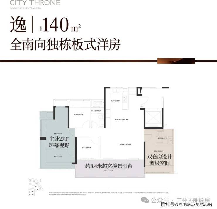 3. 建面约240㎡ 四房两厅三卫(楼王大平层):