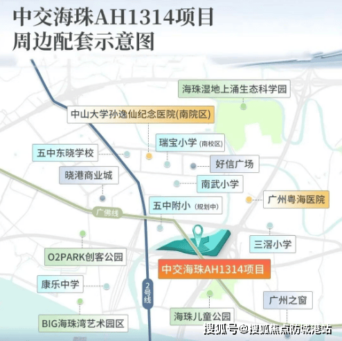 中交天翠地处老城区,距离地铁2号线和广佛线交汇的南洲站仅约400米,交通便捷。项目周边道路网络发达,广州绕城高速和广州大道在此交汇,形成了“四通八达”的交通格局。尽管如此,由于地块被多条主干道包围,不可避免地会受到噪音和粉尘的影响。不过,开发商已经采取了多项降噪措施来缓解这一问题。