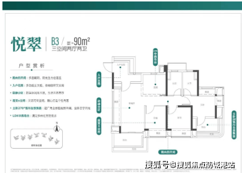 约90平方米/三房两厅两卫:紧凑实用,适合小家庭居住。