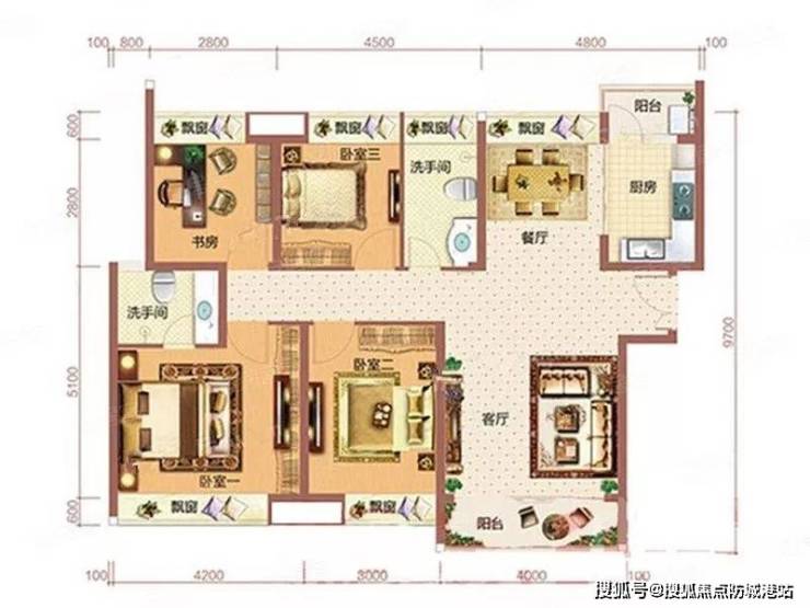 104㎡和121㎡户型设计端正,动静分离,生活阳台和工作阳台分离,是市面上好用的户型。