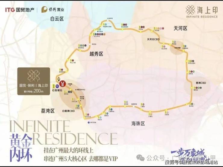 石围塘,这个名字对于老广州人来说,或许意味着曾经的铁路枢纽和茶叶集散地。但在新的城市规划蓝图中,这里正在蜕变为集高端居住、商务办公、文化休闲于一体的现代化新城。国贸保利海上印项目就坐落于此,占据了石围塘板块最核心的位置。这里不仅拥有得天独厚的江景资源,更紧邻即将全面开业的白鹅潭万象城和聚龙湾太古里,是名副其实的“双商圈”辐射区。