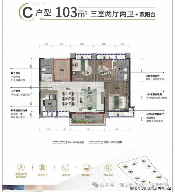 整体来看,这个户型做到了三房两厅两卫的功能布局,空间利用率极高,270° 三面采光的主卧飘窗是核心亮点,居住舒适度与实用性拉满,完全可以满足家庭全周期的居住需求,无论是新婚夫妇,还是三口之家、四口之家,都能满足居住需求,是项目的爆款热销户型。
