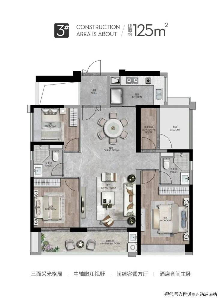 目前在售的3号楼央景品质大宅,建筑面积约125-140㎡,设计灵活多样,充分考虑到了居住者的审美需求和生活习惯。无论是追求现代简约还是温馨舒适的居住体验,这里都能找到合适的居所。特别是其独特的江景资源,约93%的户型可享受江景,前排更是实现了100%的一线景观视野,为住户带来了无与伦比的居住体验。
