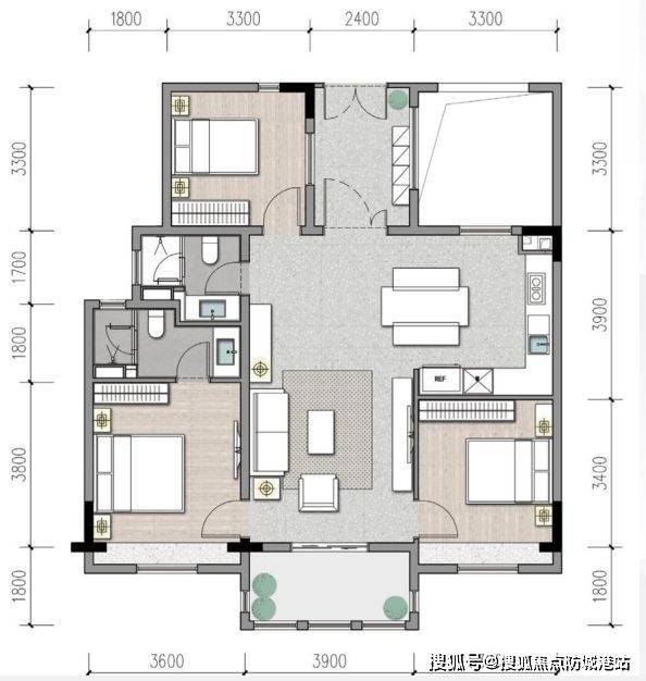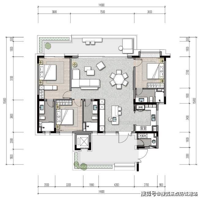 ·一体化客餐厨:约4.2米面宽,30.66㎡,布局灵活多变;