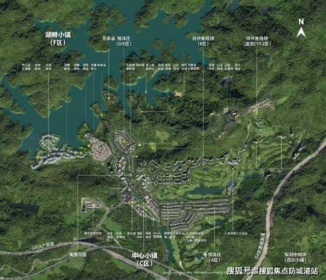 这个项目的基础配套可以说是高标准。它本身就在 4A 级景区九龙湖生态度假区内,拥有 25000 亩山林水域,20000 亩山林、4500 亩水域,体量在珠三角文旅项目中都排得上号。水域能开展桨板、皮划艇等水上运动,山林里近百条徒步路线和 34 公里徒步栈道,户外爱好者的天堂。而且物业属性丰富,已开发多个区域,正在热销中心小镇(C 区)、半山湖岸(F 区),未来还有待开发区域,100 万㎡建筑体量,生活配套以后肯定越来越完善。