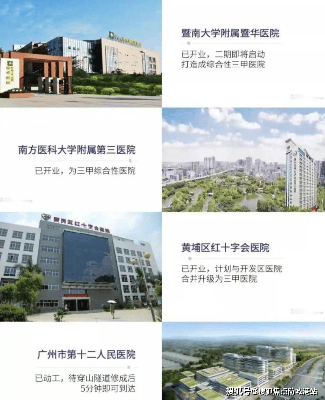项目周边有多家三甲医院,如暨南大学附属暨华医院、南方医科大学附属第三医院和黄埔区红十字会医院等。广州市第十二人民医院黄埔新院也已启用,社区内规划有卫生服务站,为居民提供全面的医疗保障。