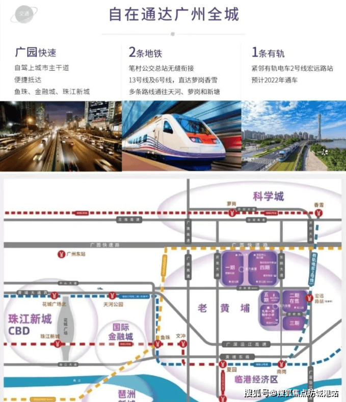 项目附近有笔村公交站,可以无缝对接地铁13号线和6号线,方便居民出行。自驾可通过黄埔大道与广园快速路,约30分钟可达珠江新城,20分钟直达金融城,10分钟抵达鱼珠CBD。未来有轨电车2号线宏远路站的开通将进一步提升项目的交通便利性。