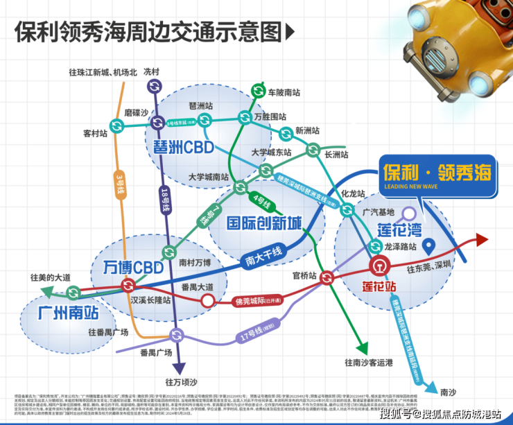 交通方面,保利领秀海2期位置优越,距离南大干线约750米,双向6-8车道设计,限速80公里每小时,通达城市各主要区域。社区可快速接入新化快速,15分钟可达大学城,25分钟直达琶洲,15分钟通达万博商圈。此外,规划中三条过江隧道将进一步缩短与黄埔及主城区的通勤距离,使居民出行更为高效便捷。