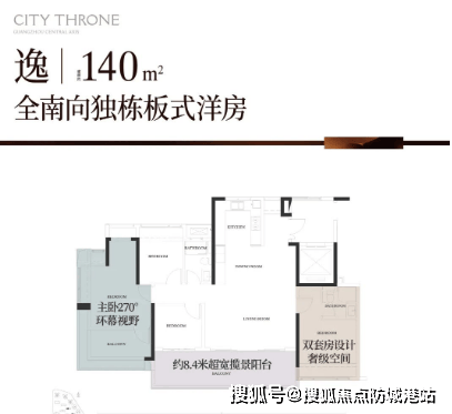 项目目前主要在售的户型有 120-143 平的塔楼、140-190 平的板楼以及 240 平的楼王大平层。其中,140 平的户型为纯南向板楼设计,四开间朝南,配备约 8.4 米南向巨幕阳台和双南向套房,通风采光极佳,居住舒适度极高。240 平的楼王大平层更是采用了独栋板楼设计,专梯专户,户户三面赏景,标配约 9㎡奢阔入户电梯厅,尽显奢华品质。