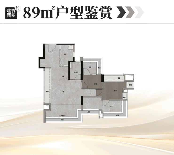 建面约88㎡刚需四房:对标市面115㎡户型,南向四面宽+270°景观阳台,主卧270°无遮挡飘窗,独立书房可灵活改造;
