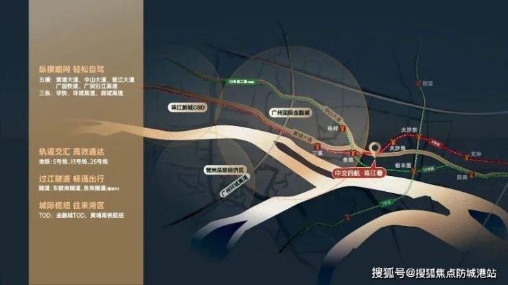 项目交通极为便利,三地铁(5号线、7号线、13号线)交汇,距鱼珠地铁站仅约500米,无需换乘即可直达珠江新城。自驾出行方面,通过黄埔大道、中山大道、临江大道、广园快速、广深沿江高速等主要道路,可畅达珠金琶及其他区域。预计于2025年下半年完工的鱼珠隧道将进一步促进该区域与琶洲、金融城等区域的交流与合作。