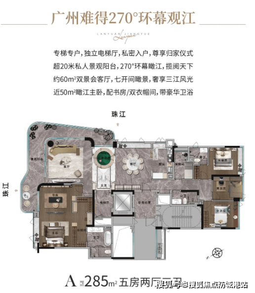 兰园江悦仅规划两种户型,分别为 193㎡和 285㎡瞰江大平层,所有户型均为专梯入户 + 江景单位,充分利用一线江景资源,为业主带来极致的居住体验。