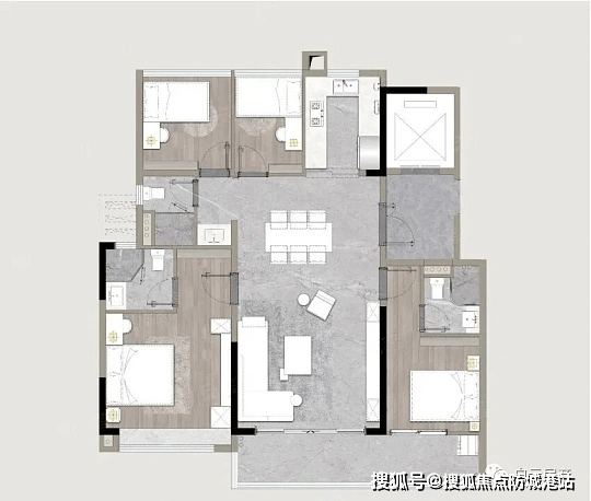 105㎡四房两卫户型,是刚改家庭的爆款户型,四开间朝南,南北通透,双阳台设计,四个房间分布合理,没有暗房,就算是二胎家庭、三代同堂,也能满足每个人的独立居住需求。对比周边同面积段户型,我们多了一个完整的房间,相当于花三房的钱,买到了四房的空间,性价比直接拉满。