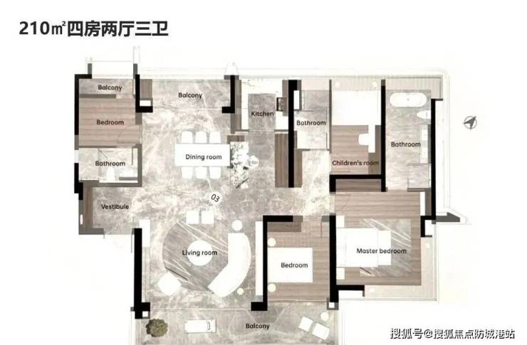 品越华府提供的产品主要为120-310平方米的大平层户型,设计上力求方正实用,最大化利用每一寸空间。大阳台和飘窗的设计增加了室内的采光和通风效果,同时也赋予了业主更多的户外休闲空间。