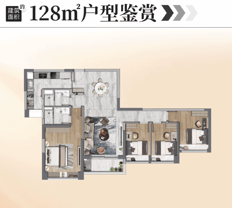 建面约 128㎡四房两卫