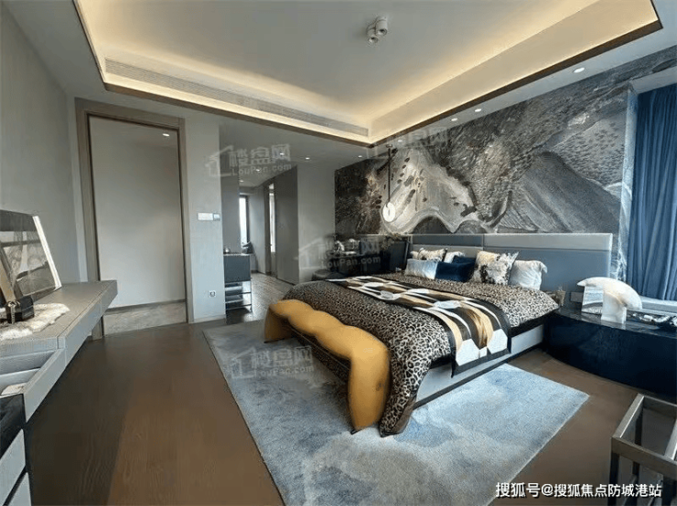 5. 建面约138㎡五房两厅两卫:南北对流+双主套设计,豪华大气,适合大家庭居住。主卧配备独立卫浴和衣帽间,私密性强,提升生活品质;双主套设计则方便长辈或客人居住,兼顾了私密性和便利性。该户型的硬装采用暖灰色调搭载森系风格软装,定制木质防火入户门+智能门锁,地面600×1200仿石大板砖,全屋3500K色温统一照明,光线柔和尽显居家温馨。
