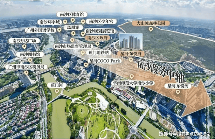 从区域定位来看,南沙区府板块(金洲-蕉门片区)是南沙发展最早、最成熟的板块之一,聚集了南沙区政府、各大行政事业单位、金融机构等,是南沙的行政与商务核心。随着南沙自贸区的不断发展,区府板块的功能不断升级,成为承接广州中心区外溢需求和湾区精英置业的重要载体。星河东悦府雄踞板块核心,周边路网纵横,步行即可到达各类生活配套,真正实现“出则繁华,入则宁静”。