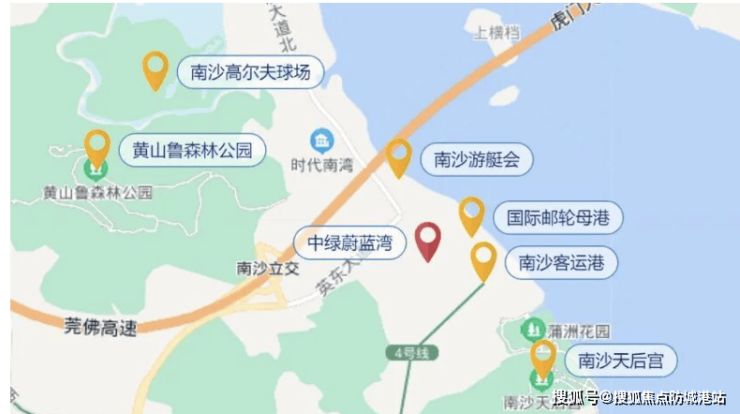 答:步行 8 分钟到 4 号线南沙客运港站,换乘 18 号线快线 30 分钟到主城,15 号线规划后通勤更快。交通实测视频拨打官方热线 400-0688-602,发送导航截图。