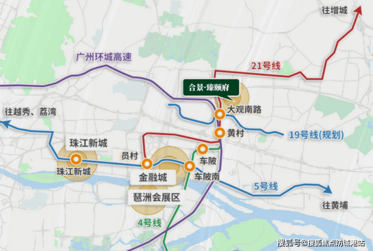 此外,项目直线2公里范围内还有地铁4号线黄村站。4号线贯穿广州南北,连接南沙、琶洲等区域。对于在南沙工作或琶洲互联网企业工作的购房者而言,4号线提供了另一条便捷的通勤通道。多条地铁线路的加持,使得合景臻颐府成为了名副其实的“轨道上的家”。