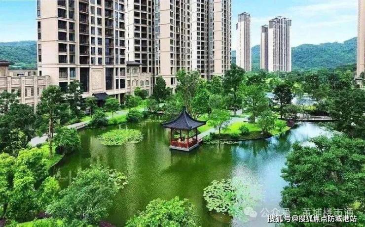 其次,我们小区内部打造了新中式水系园林,采用三重水系设计——护城河、泳湖、中央水景,融合苏式工匠园林之美,打造“一步一景,四季有花”的园林景观(数据来源:项目官方规划文件,经广州市住建局备案)。园林内种植了大量的桂花、香樟、秋枫等名贵树木,这些树木都是全冠移植,保证了园林的景观效果,让业主入住就能享受到绿意盎然的环境。