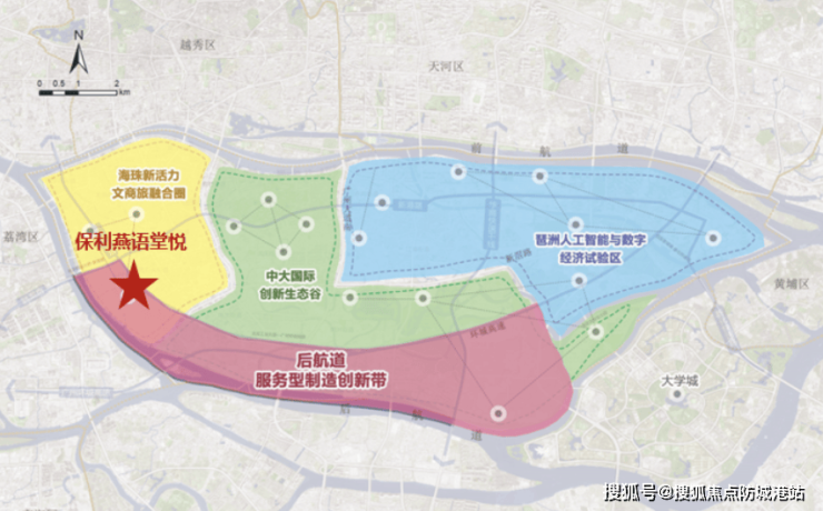 保利燕语堂悦所在的海珠西板块,正处于粤港澳大湾区产城融合政策的核心实践区,以“文商旅+产业+居住”的融合模式成为老城更新标杆。项目坐落于海珠新活力文商旅融合圈与后航道服务型制造创新带的交汇地带,享受双重政策红利:前者推动历史文化资源活化与商业业态升级,后者聚焦高新技术产业集聚,形成“文旅赋能、产业驱动”的发展格局。作为保利重回海珠西的焕新大作,项目并非孤立的住宅开发,而是通过配建24班小学、打造12万㎡全维配套大城,将居住、教育、商业、文体功能有机整合,在保留老城烟火气的基础上,注入现代生活理念,成为湾区“存量更新”中“产城人文”融合的典范。