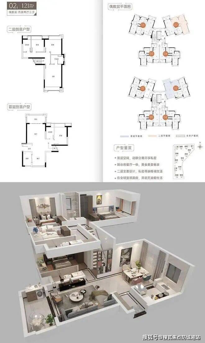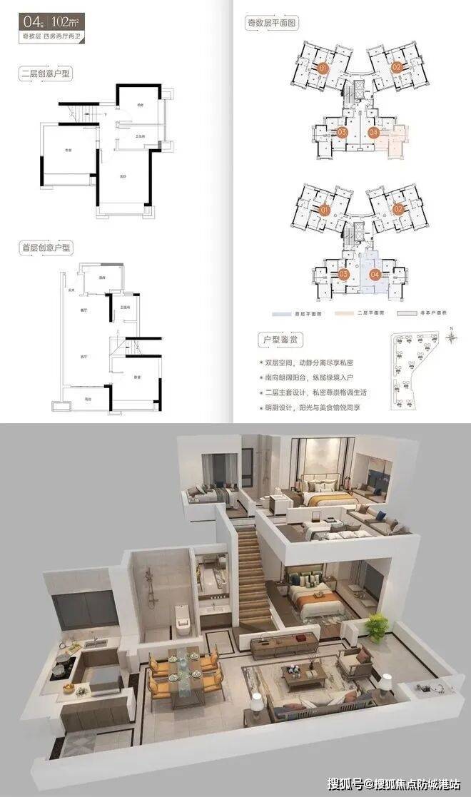 项目推出建面约 99 - 121㎡的全南向复式创意四房。99㎡四房两厅两卫(偶数层)与 102㎡四房两厅两卫(奇数层),在有限空间内实现了功能的最大化,满足小家庭或追求紧凑实用户型购房者的需求。121㎡四房两厅三卫(奇数层与偶数层),空间更为宽敞,适合人口较多的家庭。复式户型建面使用率超 100%,一层生活一层居住,动静分明,私密性更强,为业主带来舒适惬意的居住体验。