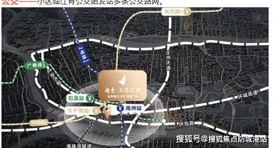 项目周边分布着广州 2 号线、广佛线、广州 10 号线三条地铁线路,其中地铁 10 号线大干围站(已开通)距项目约 800 米(百度地图测距),直达体育西商圈,逛街购物说走就走;2 号线与广佛线交汇的南洲站距项目约 850 米,广佛线石溪站距项目约 1100 米,未来 5 站即可直达广州南站,轻松接轨大湾区。