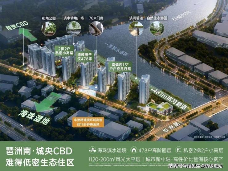 4.全球最大的市中心湿地公园 海珠湿地公园是全球最大的国家级生态公园,占地约1100公顷,提供稀缺的生态资源,为居民提供净化环境的天然氧吧。项目周边还有海珠湖公园、瀛洲生态园等,共同构成十里云水的独特生态景观。