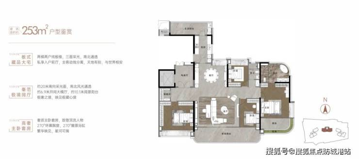 保利华创都荟天珺项目的建面约 253 平户型,采用 2T2 专梯专户设计,确保了住户的私密性和尊贵体验,南北通透的布局和低密板楼的设计,保证了室内的通风采光,彰显出豪宅的高贵品质。