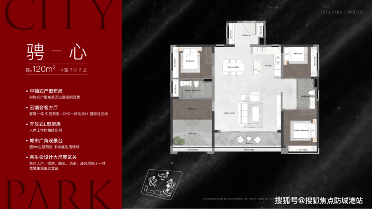 项目主推120-140㎡南向四房,设计兼顾功能与尺度:
