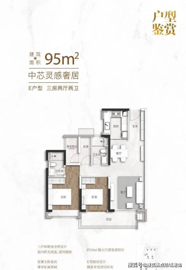 95㎡户型布局精巧,功能齐全,十分适合追求品质生活的小家庭。多开间南向的设计,保证了充足的采光,让阳光洒满室内各个角落,营造出温馨明亮的居住氛围。超 10 米宽幕大阳台是一大亮点,不仅增加了室内的采光面,还为生活增添了更多乐趣。业主可以在阳台上摆放桌椅,打造一个休闲小天地,享受阳光与户外景色;也可以种植一些花草,打造空中花园,增添生活情趣。