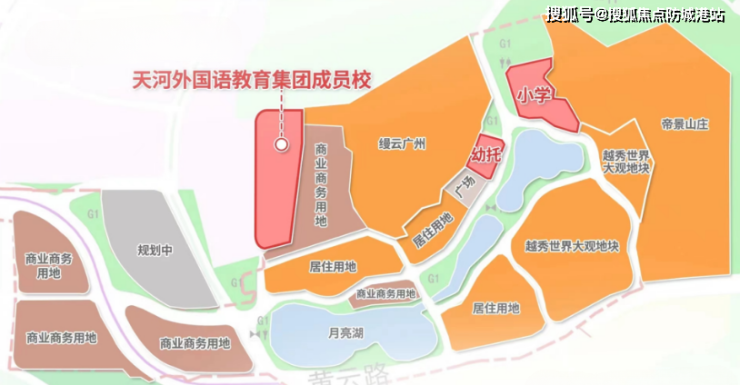 至于天外世界大观学校,由于学校是楼盘配建,小学对口范围必定包括缦云广州,另外帝景山庄是同一个开发商,和西地块渊源很深,划入的概率也很大。还有越秀地产世界大观项目,瑧颐府,半山溪谷,因为初中学校规模大(27个班),招生范围比较广,也有相当机会入读。